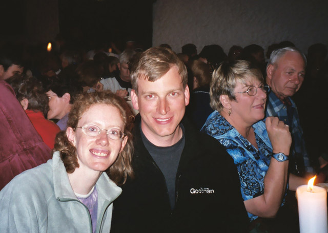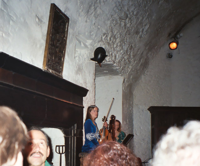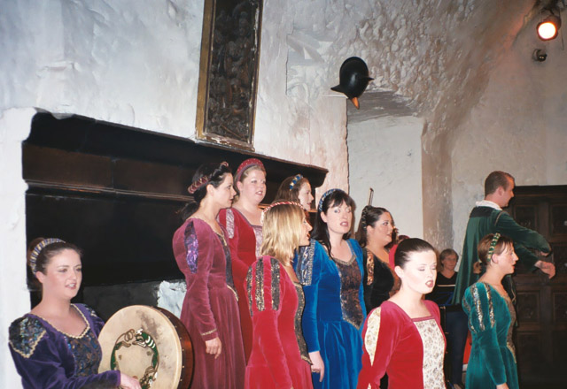 The banquet itself was kind of cheesy, but what do you expect from that sort of thing? The food was delicious and there was singing by the wait staff except when they were waiting on us when there was music from a harpist and a violinist. It was also crowded and touristy. I guess it gave Kylemore Abbey a run for its money on that front. Still, we learned some things. We both tried snuff for the first time, and we learned a plausible etymology of the term "honeymoon." As we were told it, meade (a honey wine) was believed to be conducive to fertility and a newly married couple would drink meade each night for the first month (or cycle of the moon) of marriage. Therefore a "honey moon" was the beginning of a fertile marriage. More reputable etymological sources than medieval banquets dispute this claim, and point to the first written reference as being the period of sweetness for newlyweds that as the moon, wanes just after it is full. (sample reference.) At the banquet, we also learned that you never know when you’re going to have your picture taken!