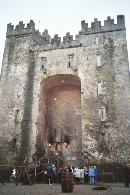 We then headed to the bus station in Galway to catch a bus to Bunratty. We figured it wouldn’t be too much trouble to get to Shannon from Bunratty and we had a high recommendation for the "Medieval" banquet at Bunratty castle. In the bus station, we bought a couple of drinks at the cafe there and proceeded to nosh on our picnic stuff. However, we were promptly told that only items purchased at the cafe could be consumed there and would we please leave. While I would have expected something like this in the US, I was surprised by it in Ireland. So, we left in a huff and ate in the "lounge" on wobbly bench-seats with no tables. Oh well.
