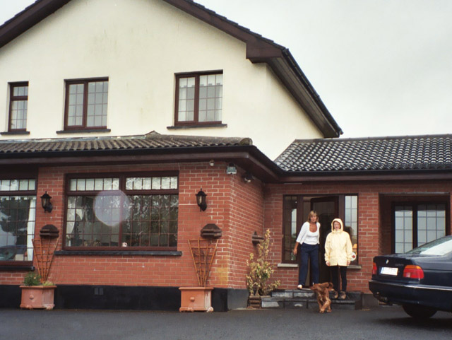 The bus to Shannon/Limerick dropped us off at Bunratty. We found a pub and asked for directions to our B&B which was about a mile down the low road. On foot, and with all of our luggage, a mile is much farther than it is on bikes without luggage, still it seemed quite doable. With packs on our backs (and my front) we headed down the low road. Unfortunately, it was already raining, and it didn’t let up during our walk. When we finally arrived, the hostess said "You poor dears! Why didn’t you ring? I’d have come and picked you up." We didn’t have an answer. Frankly, it never occurred to us. Just to balance things out, we did let her drop us off at Bunratty castle later in the evening through.