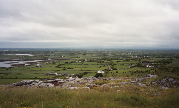 "Burren" comes from the Irish word "Boireann" meaning "rocky place," and this part of the county lives up to its name. The amount and color of the exposed stone gives distant ranges the appearance of being covered with flowers of heather rather than being (as they are) about 80% exposed rock with various grasses and plants fighting their way up in the remainder of the space.