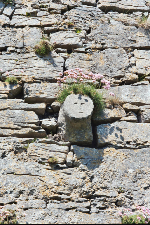 We also worked our way up to O’Brien’s Castle, the ruins of a 15th-century castle. Since there were no "Please don’t climb on the castle" signs, Carolyn went scrambling around. While she was doing that, I found an interesting gargoyle-type creature sticking out of the side of the castle, complete with a head of flower-hair.