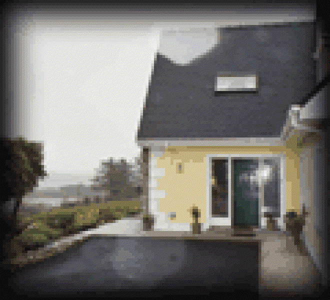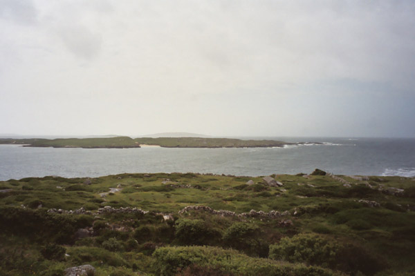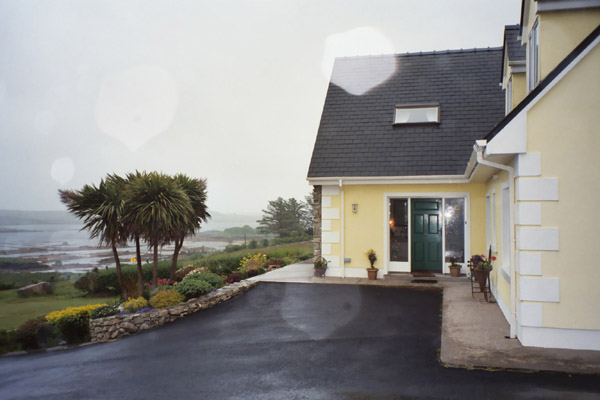 As we pushed on into the afternoon, either we turned into the wind, or the wind turned into us, but whichever it was we developed a headwind. Also, it had been threatening rain much of the day, but by mid afternoon, it made good on its threat. It wasn’t a downpour like day 4, but it was enough that we were very glad when we got to Ivy Rock House, our B&B for that evening. Not too far outside of Roundstone, where the Ivy Rock House was, we passed a "For Sale" sign for an abandoned village. 8 cottages and something over 100 acres were being sold.