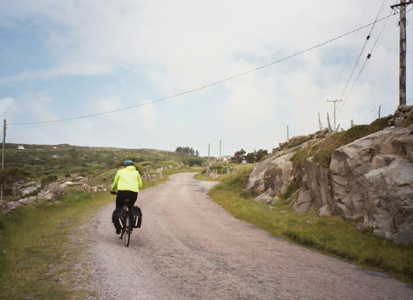 Between shifting wind and shifting route, the wind was all over the place, but rarely a headwind for long. We meandered along and stopped for lunch at Keogh’s in Ballyconneely village. You never know exactly what you’re going to get when you ask for a chicken sandwich, but I was still a little surprised to find plain strips of chicken on well-buttered plain white bread, but I still ate with a gusto reserved for a day of cycling. Carolyn had yet another interpretation of seafood chowder which again failed to live up to the expectations set by Monk’s in Ballyvaughn.