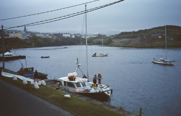 So, tonight’s B&B deserves its own paragraph. For that matter, it deserves its own page. Well, it already has its own site, so go there. But boy, did we feel pampered! There were 2 twin beds pushed together and made up as a King. There was a fireplace, TV, views of the Quay, a heated towel rack, tub, kitchenette… It was spacious and gorgeous. Simply wonderful. So, if these pages prompt you to go to Ireland, go to Clifden, dine at the Derry Clare and stay at the Quay House. You’ll be treated right! (But before you call, be sure you know that Quay is pronounced like "key".)