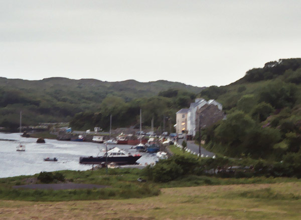 We had no trouble finding Clifden, and had seen it some time ago on our route without knowing for sure that that’s what we were seeing. Clifden seemed a more sizeable town than most we’d been in so far. It even had an ATM we could use, which we did as our supply of Euro had dwindled considerably. After hunting around and examining several restaurants we decided on the Derry Clare that had been one of the recommendations we’d received. My were we happy with that choice! We started out with fried brie, and I had Chicken Kiev while Carolyn enjoyed a seafood pie. The Irish may not be the French, but they can still make a fine meal!